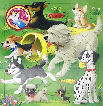 Интересный фигурный пазл, где детали выполнены в форме разных пород собак. Сам пазл большого размера, детали тоже крупные, есть подложка для сборки пазла. В целом, я рекомендую детские пазлы как хороший выбор для развлечения и обучения детей. Они могут помочь развить у детей множество полезных навыков и умений, а также стимулировать их воображение и творческие способности.