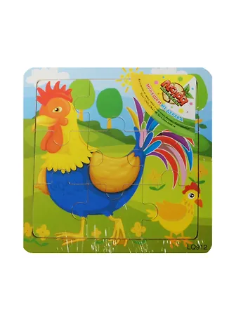Пазл малый квадратный Петушок (507168) (9 элементов) (игрушки из дерева) (упаковка)