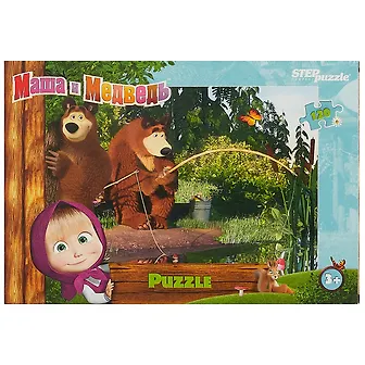 Пазл «Маша и Медведь» состоит из 120 деталей. На картинках представлены сцены из одноименного детского мультфильма.
