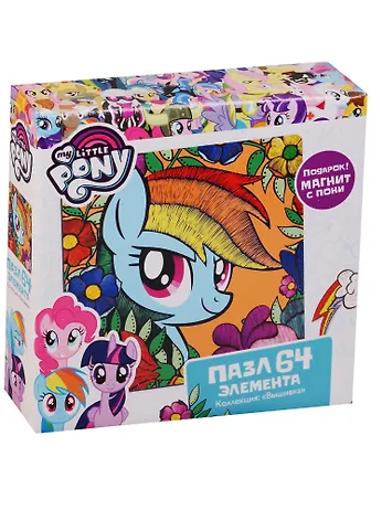 Пазл-мини, Оригами, My little pony Movie. Радуга Дэш 64эл., (220х220)+ фигурка с магнитиком 03416