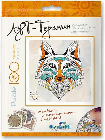 К коллекции "Арт-терапии" - новые пазлы для раскрашивания в дой-паке. Стильные изображения животных, птиц и цветов не оставят равнодушным никого - а ведь их еще можно раскрасить карандашами, красками или маркерами! В подарок 4 карточки с мандалами-символами здоровья, любви, удачи и достатка, к обратной стороне которой можно прикрепить магнит (идет в комплекте) и повесить на любую железную поверхность.