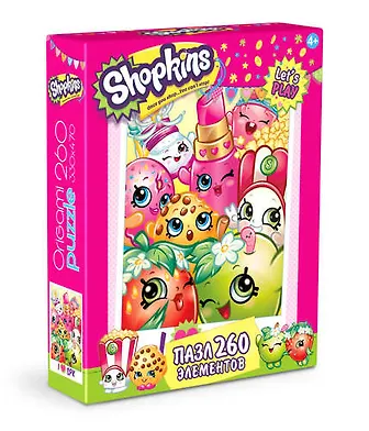 Кто такие Шопкинсы? Это крошечные жители супермаркета, покорившие мир. Теперь маленький поклонник мультсериала и игрушек может собрать пазл с любимыми героями! Пазл из 260 элементов с популярными Донатом, Печенькой, Клубничкой и Кроссовком - малышу наверняка понравится!