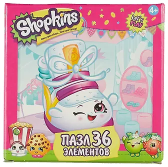 Кто такие Шопкинсы? Это крошечные жители супермаркета, покорившие мир. Теперь маленький поклонник мультсериала и игрушек может собрать пазл с любимыми героями! Пазл из 36 элементов с Донатом, Печенькой, Клубничкой и Кроссовком - малышу наверняка понравится!