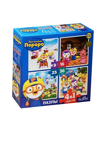 Пазл Оригами 4в1 9-16-25-36эл Серия Пингвиненок Пороро Друзья на отдыхе