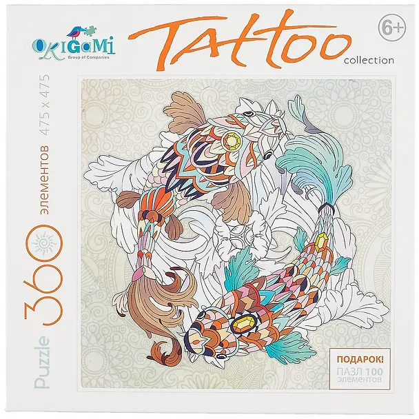 Новая серия пазлов Tattoo коллекции «Арт-терапия» вдохновляет и очаровывает с первого взгляда! Пазлы из 360 элементов удобно собирать, а их квадратная форма впишется в любой интерьер и станет его ярким акцентом! Выберите один из 4 сюжетов с модными эскизами татуировок или соберите всю линейку!