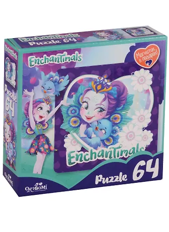 Пазл, Оригами Энчантималс 64эл. +магнитик Пэттер Павлина и Флэп (22х22см) 03555