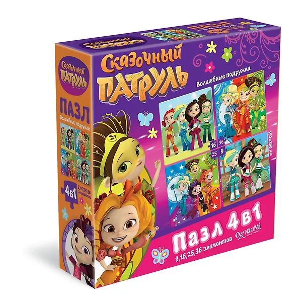 Набор пазлов 4в1 «Волшебные подружки» - это комплект пазлов с разной элементностью, включающий в себя головоломки из 9, 16, 25, 36 элементов, объединенных общей тематикой. Это необычная коллекция картинок с изображением любимых персонажей мультфильма «Сказочный патруль», которая понравится любому ребенку. Постепенно усложняя сборку пазла от 9 элементов до 36 элементов, ребенок научится внимательности, концентрации, а также сможет развить мелкую моторику. Соберите всю коллекцию и окунитесь в новое приключение вместе с известными героями!