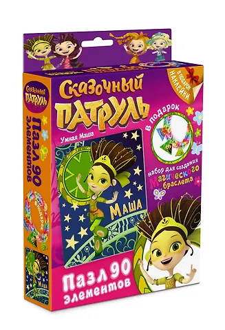 Пазл, Оригами Сказочный патруль (17,6х21см) 90эл. +браслетик, наклейка Умная Маша 03662