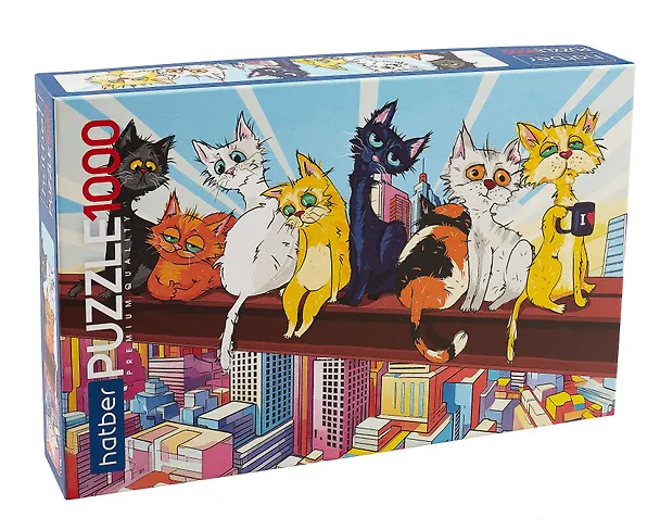 Забавнейший пазл - заМУРчательная аллюзия на знаменитою фотографию, складывается в картину, которая станет украшением детской. Качество картона отдельных частей очень достойное, а цвета печати яркие и сочные. Работы на сборку пазла здесь на несколько дней!