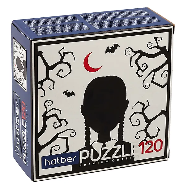 Небольшой пазл для дороги. Понравился дизайн в чёрно-белом цвете! Не фанатка Уинсдей или как там его, но картинка атмосферная, поэтому взяла. Пытались собрать в кафе, пока ждали заказ, собирали вдвоём, но смогли только рамку и часть внутри собрать. Думаю часа за 2 максимум управились бы. Собирать интересно за счёт всяких загогулин и ветвей дерева, особенно прикольно когда интуитивно находишь куда этот кусочек. Детальки мелкие, поэтому я бы детям взяла в дорогу на поезде, чтобы они собирали!