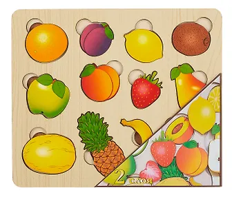 У развивающей доски «Часть и целое. Фрукты» от издательства «Нескучные игры» 12 ячеек и 2 слоя: для 12 целых фруктов и тех же фруктов в разрезе. Игроку нужно правильно подобрать разрез к фрукту, а затем вложить их силуэты в подходящие ячейки на доске. Можно также обсудить с ребенком, какого цвета определенный фрукт, какой формы, в приготовлении каких блюд используется. Развивающая доска «Часть и целое. Фрукты» помогает развивать мелкую моторику, логику, внимание и усидчивость.