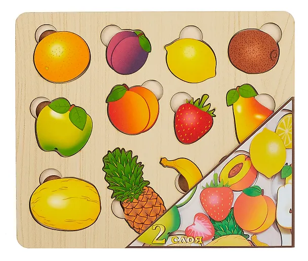 Пазл-рамка "Часть и целое. Фрукты" с разрезными вкладышами внутри, 24 детали, 2 слоя
