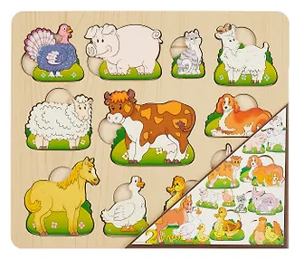 Деревянная доска "Чей малыш? Домашние животные" - это игровая панель для развития зрительного восприятия, тактильных функций, мелкой моторики, логического и пространственного мышления Вашего малыша.