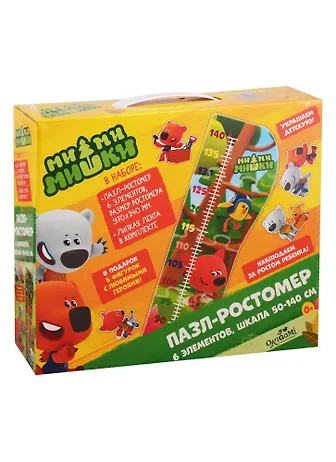 В наборе: пазл-ростомер, 6 элементов, размер ростомера 970х240 мм, шкала 50-140 см, липкая лента.