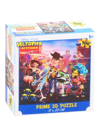 Стерео-пазл Prime 3D "ИСТОРИЯ ИГРУШЕК". Стерео-пазл с эффектом объемного изображения. Размер собранного пазла 31 х 23см. Упаковка: картонная коробка 15 х 15 х 5см со стерео-картинкой на лицевой стороне. Количество элементов пазла 100.