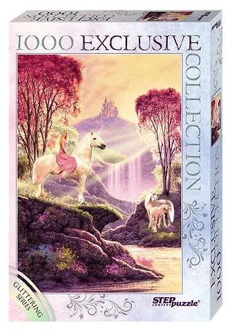Пазл создан по мотивам великолепной картины “Волшебная долина” Стива Рида. Сверкающий глиттер придаёт изображению пазла яркость и контрастность