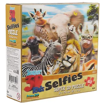Super 3D пазл "Африка селфи", 63 фрагмента, размер собранного пазла: 31 х 23см, лицензия Howard Robinson.Рекомендуется детям с 4-х лет