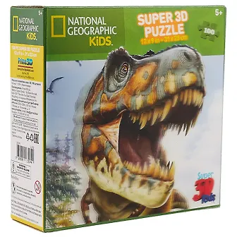 Super 3D пазл "Тираннозавр", 100 фрагментов, размер собранного пазла: 31 х 23см, лицензия National Geographic.Рекомендуется детям с 5-ти лет