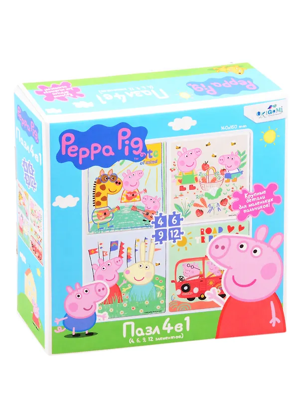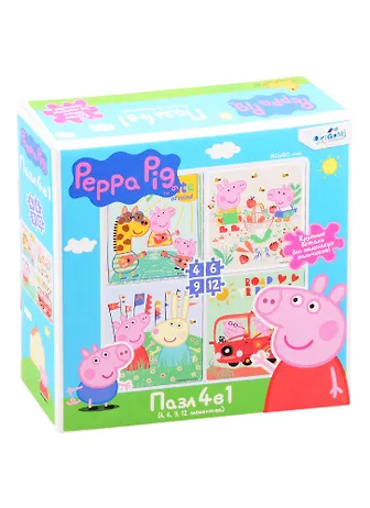 Набор пазлов 4в1 «Солнечная прогулка» - это комплект пазлов с разной элементностью, включающий в себя головоломки для самых маленьких от 4 до 12 элементов, объединенных общей тематикой. Это необычная коллекция картинок с изображением героев мультфильма Свинка Пеппа, которая понравится любому ребенку. Соберите всю коллекцию и окунитесь в новое приключение! Постепенно усложняя сборку пазла от 4 элементов до 12 элементов, ребенок научится внимательности, концентрации, а также сможет развить мелкую моторику.