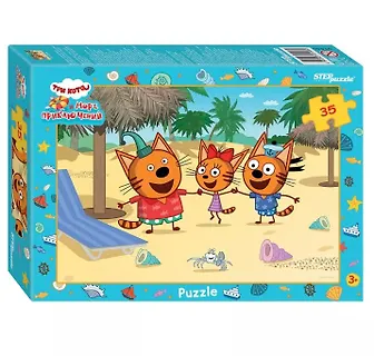 Пазлы этой серии мы берём ребенку двух лет.Три кота это любимые персонажи,поэтому ребенку очень понравились.Мы же оцениваем качество.Пазлы плотные,не гнутся.Отрезаны по перфорации хорошо,без зазубрин.Хорошо стыкуются.Иллюстрация из мультика очень яркая и красочная.Детали большого размера,ребенку собирать удобно.Сложность рассчитана как раз на два-три года.