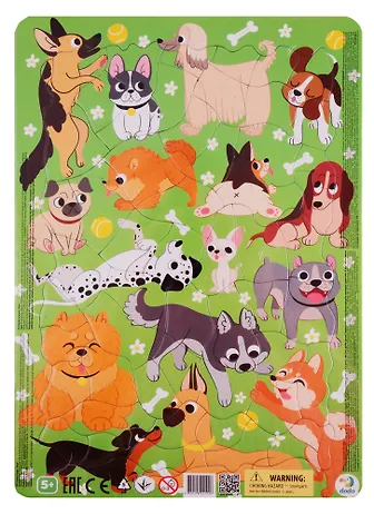 Занимательная головоломка — пазл Песики. Фрагменты с собачками разных пород обрадуют маленьких поклонников домашних животных. В процессе игры можно придумывать имена найденным персонажам, сочинять истории для каждого образа и даже угадывать породы.