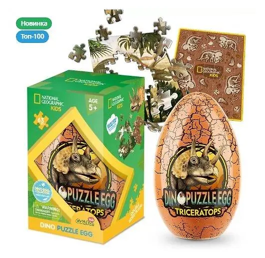 Представляем новую линейку пазлов CubicFun в коллаборации совместно с National Geographic - пазлы Динозавры Юрского периода в металлическом яйце. Детали самого пазла изготовлены из плотного дизайнерского картона Ivory Board. Пазл состоит из 63 деталей. Размер готового пазла 18 х 24 см. Размер и сложность этого пазла отлично подходит для детей от 3 до 10 лет. При сборке пазла развивается логическое мышление, воображение и мелкая моторика рук. Пазл имеет разные изображения с 2-х сторон: обратная сторона - абстрактное изображение окаменелостей динозавров, передняя сторона - изображение динозавра. Пазл упакован в специальное яйцо динозавра, сделанное из металла. Это необычная упаковка понравится