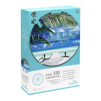 Интерьерный пазл "Манящая даль" имеет очень оригинальную круглую форму и удобный размер 30×30 см. Пазл состоит из 150 элементов и сделан из голландского картона высокого качества. На нем изображен один из видов острова Мале (столица Мвльдивских островов). Само изображение очень яркое и красочное. На коробке имеется краткая информация про остров, его координаты, а также предлогается инструкция по надежному закреплению пазла в раме.