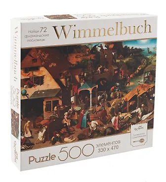Пазл привлёк своим стилем и множеством деталей. Он небольшой, но может оказаться сложноват. Некоторые цвета отличаюся от образца. Собирать приходится пытаясь ориентироваться и на коробку, и на листок с пословицами - в первом случае изображение большое, но по всему периметру не хватает части рисунка примерно на 1 деталь пазла, во втором случае изображение целое, но маленькое, и частично перекрыто рамками и цифрами для пословиц.