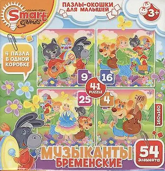 Пазлы-окошки для малышей (52082) Сказка Бременские музыканты (54эл.) (коробка)