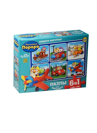 Пазлы разв. 6в1 02186 Едем плаваем летаем (156х156) (6 фигур. картинок) (Пингвиненок Пороро) (3+)