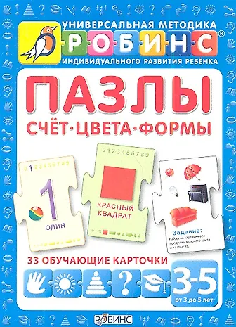 Пазлы. Счет. Цвета. Формы. 33 обучающие карточки (от 3 до 5 лет)