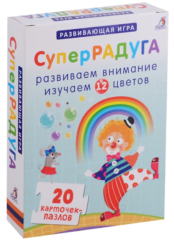 «СуперРАДУГА» - это игра для детей от 3 лет, состоящая из 20 карточек-пазлов. Разнообразные задания в игровой форме помогут изучить 12 цветов и улучшить навыки моторики, мышления, внимания и цветовосприятия. В наборе два уровня сложности: малыши учатся сопоставлять цвета; дети постарше разбирают многоцветные картинки, выстраивая цепочки из нужных цветов. Составляйте упражнения самостоятельно или пользуйтесь карточкой-инструкцией.