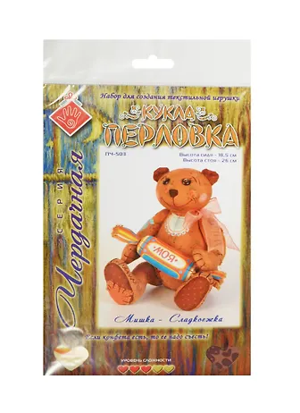 ПЧ-503 Набор д/созд. текстильной игрушки Мишка-Сладкоежка (высота сидя 18,5см/стоя 26см) (Чердачная) (упаковка)