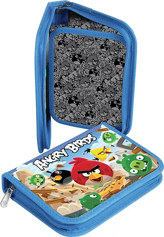 Пенал 1отд. "ANGRY BIRDS" 19*13см, синий, доп.откидная секция, Hatber
