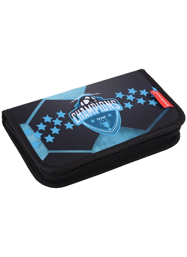 Классический жестко-каркасный пенал-книжка с внутренней системой фиксации школьных принадлежностей. Пенал изготовлен из износостойкого 100%-го полиэстера. Пеналы имеют расширенную молнию, что облегчает постоянное закрытие и открывание пенала. Надежная молния с мягким ходом оснащена удлиненным бегунком с логотипом ErichKrause®. Наполнение (11 предметов): ручка шариковая, синие чернила: 2 шт., ручка шариковая, черные чернила: 1 шт., чернографитный карандаш HB: 1 шт., фломастеры: 4 цвета, ластик: 1 шт., точилка: 1 шт., линейка пластиковая 15 см: 1 шт.