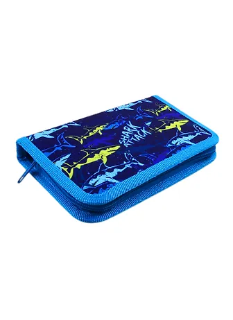 Пенал 1отд. "Цветные акулы" 19*11, молния, ткань, Оникс