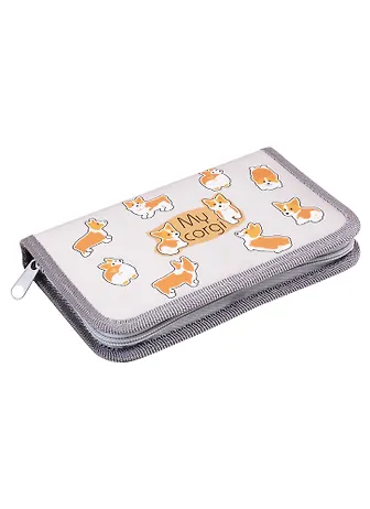 Пенал 1отд. Корги паттерн 19*13, кожзам, голография, Оникс