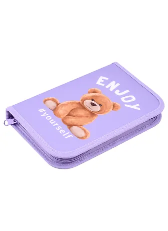 Пенал 1отд. "Мишка на сиреневом" 21*13,5см, молния, полиэстер, откидн.планка