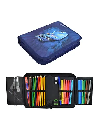Пенал 1 отделение "SPORTI", прямоугольный, c наполнением (31 предмет), ассорти, Herlitz