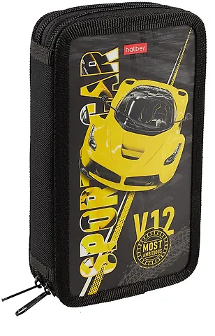 Пенал 2 отделения HATBER Автоспорт 190х110мм, матовая ламинация, 3D лак, с таблицей умножения.