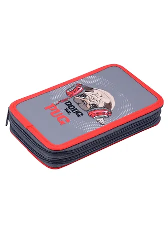 Пенал 2 отделения "Мопс в наушниках" 19*11, молния, полиэстер
