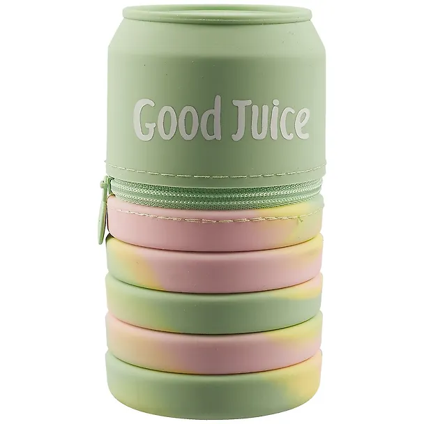 Необычный пенал в виде банки сока пригодится для хранения карандашей, ручек, маркеров, линейки и ластика. Он сделан из силикона и легко чистится от загрязнений. Но главная особенность пенала в том, что он легко превращается из маленького в большой, и вы можете выбирать для себя удобный размер. Это очень практично!