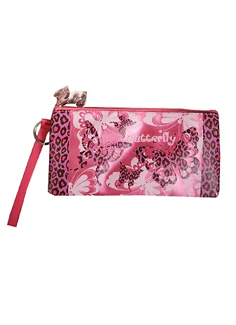 Пенал-косметичка 1 отделение "МОДНЫЕ БАБОЧКИ" 20*10,5см, атлас с запечаткой, фигурная собачка "сердечко", Феникс+