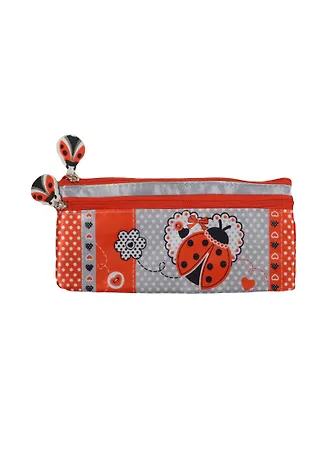 Пенал-косметичка 2отд. "Коллаж с божьей коровкой" 19,5*8,5см, атлас с запечаткой, фигурные собачки, Феникс