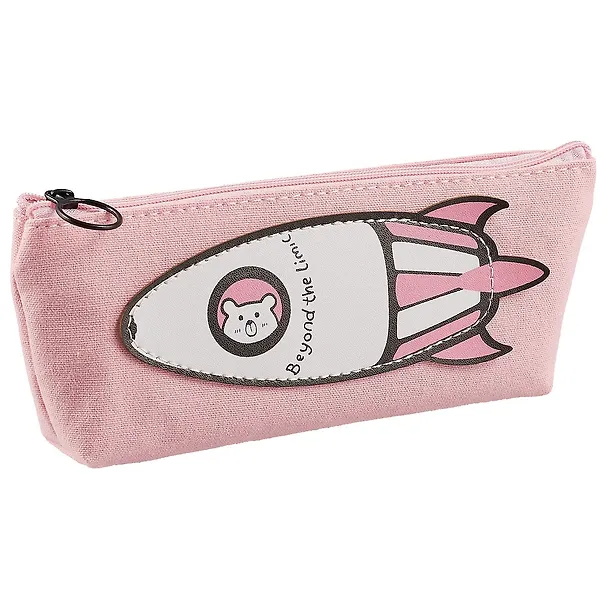 Привезли его в пластиковой упаковке, что приятно, так как пеналы в светлых тонах, маркие. Внутри пенала для хорошей формы вложен вспененный полиэтилен. Пенал сшит из ткани, есть подклад. Все сшито аккуратно. Мне достался голубой, светлый цвет, а подклад коричневый. Материал верха натуральный хлопок. Подклад из обычной подкладочной ткани. Молния вшита хорошо. Ракета тоже пришита аккуратно.