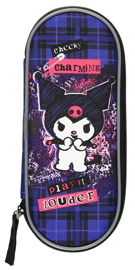Пенал корпусный Centrum "Kuromi" имеет плотный жесткий каркас овальной формы на картоне с закругленными краями, надежно защищающий внутреннее наполнение от различных повреждений. Корпус покрыт высококачественным полиэстером 210 ден. По краям имеется текстильная отделка. Внешняя часть декорирована рисунком, выполненным с помощью полноцветной печати. Одинарный пенал без наполнения закрывается с помощью молнии. Внутри расположена откидная планка с держателями для канцелярских принадлежностей. Размер: 21*8,5*5 см.