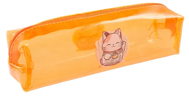 Красивый цвет пенала, очень сочный и теплый, поднимает настроение стоит только на него взглянуть. Пенал прозрачный и мне это в нем очень понравилось, так как покупался как косметичка и все принадлежности в нем видно и их не нужно искать. Прошит пенал хорошо, нитки нигде не торчат, замок легко скользит и не заедает. Сам пенал очень легкий и мягкий, занимает мало места в сумочке.