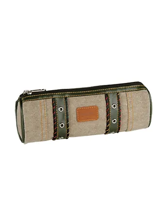 Пенал-косметичка круглый 1отд. 20*4,5*6,5см уплотнен. ткань, вставки из искусств. кожи, мет. фурнитура, серо-зеленый, PROFF