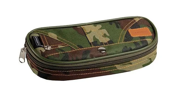 Пенал-косметичка овальный 1отд. 20*9*4см полиэстер, окантовка из искусств. кожи, зеленый с рисунком "милитари", PROFF