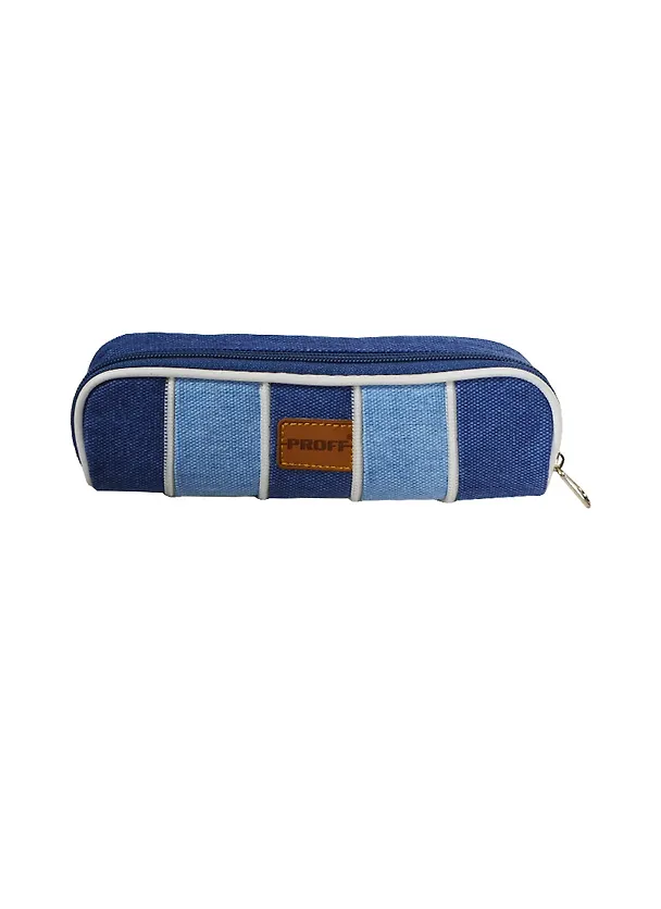 Пенал-косметичка овальный 1отд. 21*6*5,4см ткань "хлопок", вставки из ткани, сине-голубой, PROFF